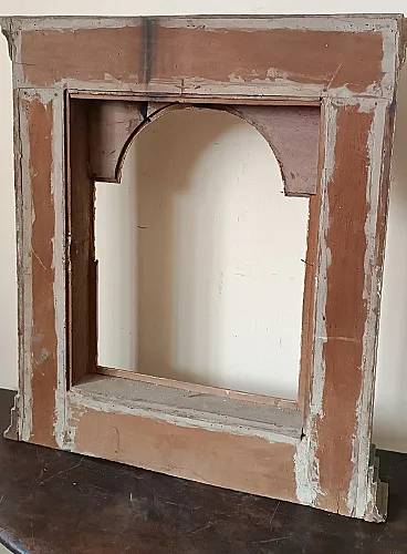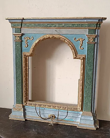 Ancient carved and painted wooden frame, in Baroque or Renaissance style, which served as a reliquary or tabernacle.
