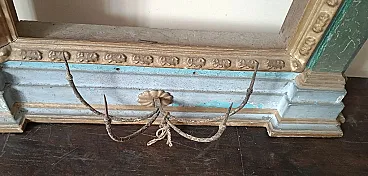 Identification: Antique carved and polychrome wooden frame, adorned with pure gold finishes and green and blue hues.