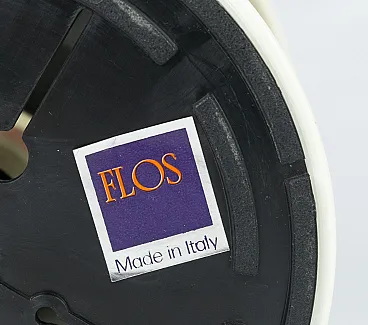 The base is black with Flos adhesive logo, while the lampshade and frame are metal