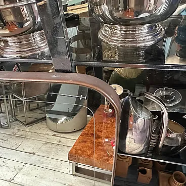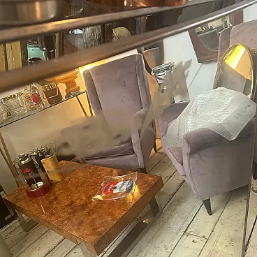 Questo pezzo è una vera e propria dichiarazione del Modernismo italiano, che incarna la miscela di linee pulite, materiali lussuosi e sottili dettagli artistici dell'epoca. Le sue dimensioni importanti lo rendono uno specchio da pavimento ideale da appoggiare a una parete, oppure può essere facilmente montato per fungere da specchio da parete sovradimensionato in un ingresso, un soggiorno o una camera da letto. Un reperto raro ed elegante per i collezionisti di design italiano vintage del Mid-Century.