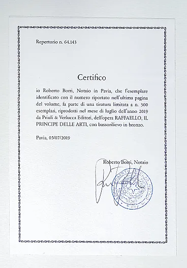 Collectible book RAPHAEL, The Prince of the Arts, limited edition and numbered 125/300, bronze bas-relief and rotating plexiglass display. Scripta Maneant for Priuli & Verlucca.