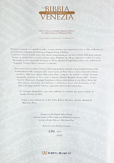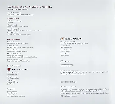 The combination of images of mosaic works with the Sacred Text was curated by the scientific committee of the Marcianum Press publishing house, composed of scholars and theologians: