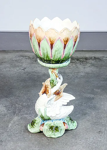 Ceramic cachepot with sculptural base, mid-20th century