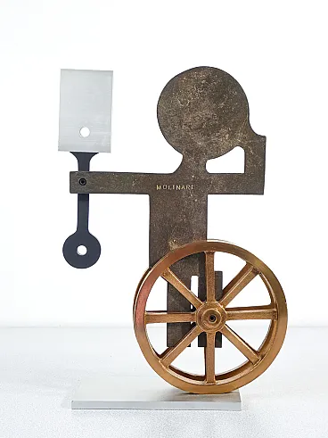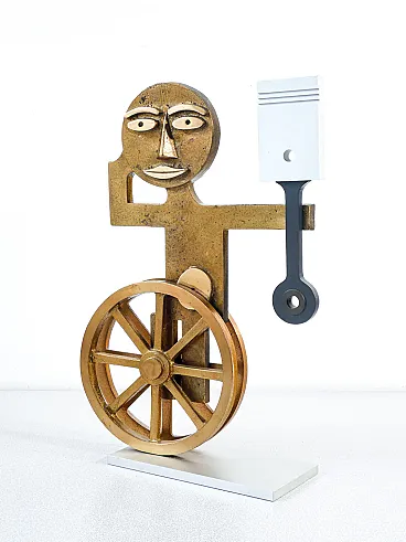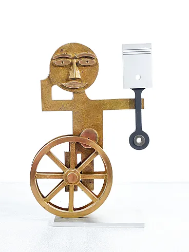 Figure with wheels and piston, sculpture by Mario Molinari, 1970s