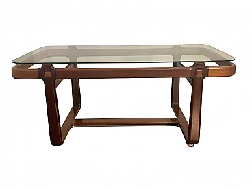 Mahogany dining table with glass top, 1970s