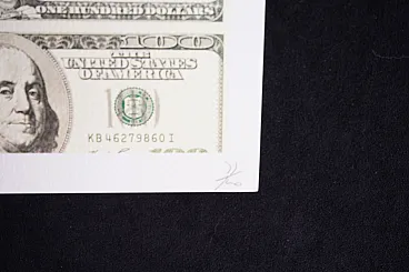 With a dry stamp from Lizens, 3 D hologram with certificate and hand signed with pencil.
