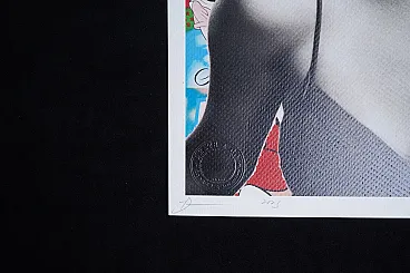 Signed with a license dry stamp, 3D hologram with certificate, and hand in pencil.