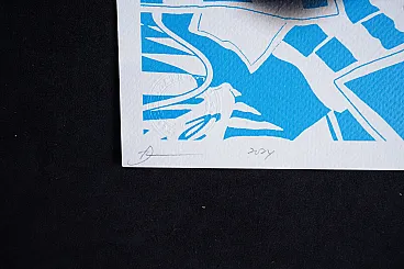 Signed with a license dry stamp, 3D hologram with certificate, and hand in pencil.