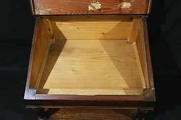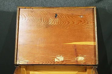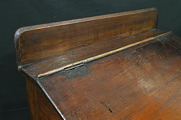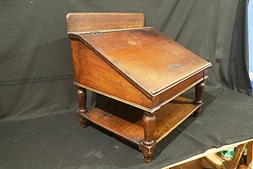 The reading surface lifts like a door and hides a large compartment where writing instruments were stored; in the lower part, a convenient shelf allowed you to store books or registers.