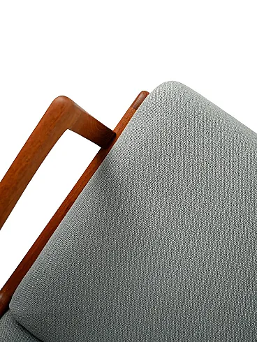 Pair of Danish Senator armchairs by Ole Wanscher for Cado, in solid teak and grey-blue fabric.