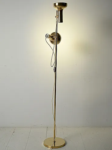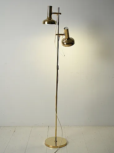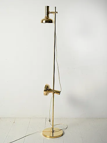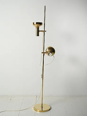 1960s brass floor lamp by Solken Leuchten with two adjustable and height-adjustable lampshades.