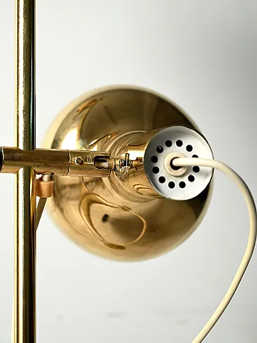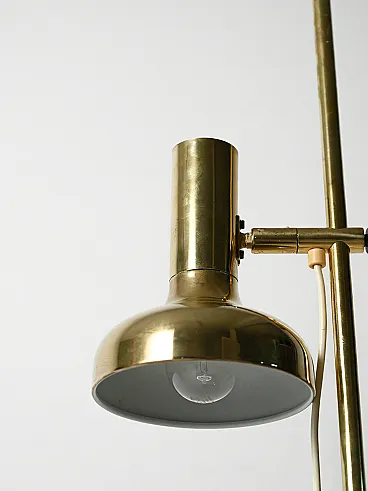 1960s Scandinavian production by Solken Leuchten in polished brass with heavy base and two movable light fixtures. The lampshades slide along the stem and rotate to direct the beam, with metal blocks for a solid fixing. Original and functioning electrical system; natural patina and slight signs of use consistent with age.