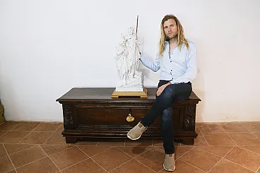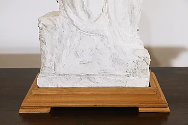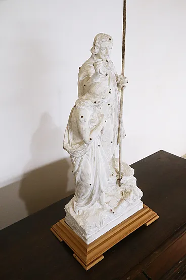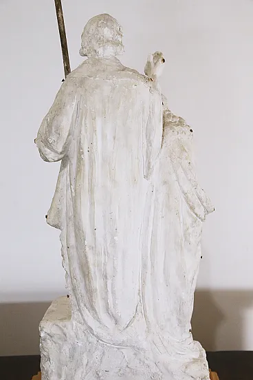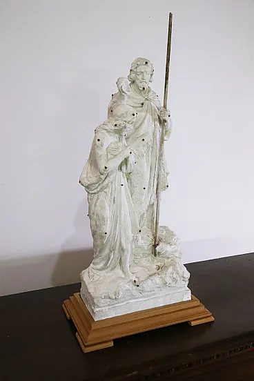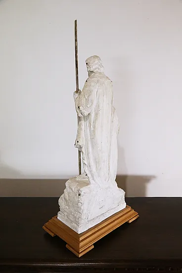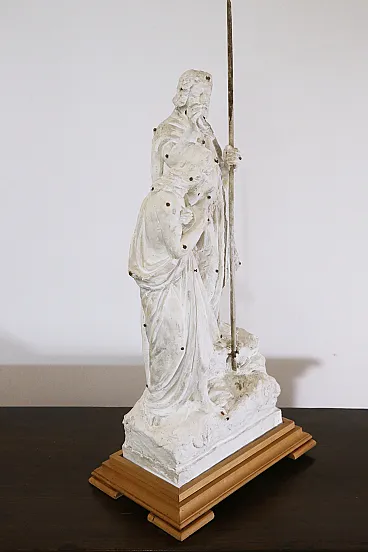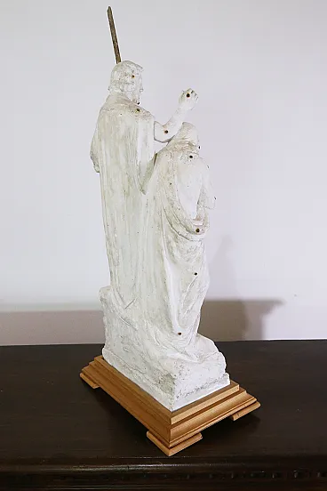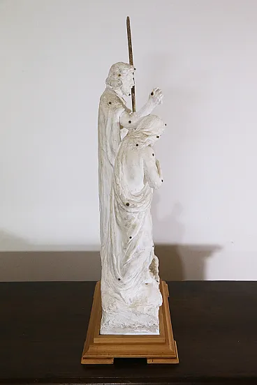 Ancient preparatory plaster sculpture depicting the baptism of Jesus on the banks of the Jordan River by St. John the Baptist. The sculpture can be dated between the end of the 19th century and the beginning of the 20th century. The peculiarity of this work is precisely that of being a preparatory work, that is, a model created in plaster through which the sculptor then went on to create the larger and definitive sculpture in marble. The iron nails that can be seen on the sculpture were used by the artist to take measurements and transfer the correct proportions of the model to the final work. The preparatory sculptures were very often then destroyed once the finished sculpture was created. The scene represented is the classic iconography of the baptism of Jesus, the Baptist is depicted with a dromedary's fur and a cape (usually red as a symbol of martyrdom) while Christ with the long robe is in the act of descending into the waters of the river while St. John sprinkles water on his head with the shell. The wooden base was made specifically for the work and is made of cherry wood. Measurements: Total height 95 cm Width 43 cm Depth 28 cm Also look at the other items I have for sale:-)