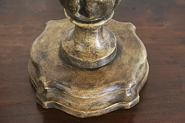 In origine questi due porta palme erano argentati con foglia d'argento su bolo nero, purtroppo l'usura e il tempo hanno fatto si che l'argentatura non si sia conservata lasciando intravedere il bolo nero e il gesso sottostante.