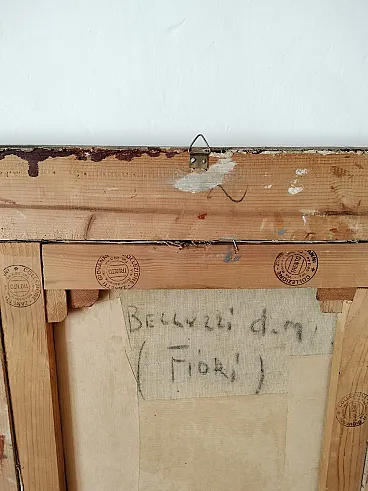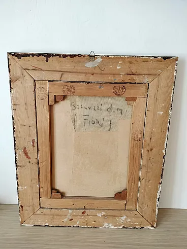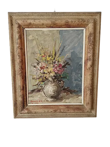 Beautiful painting by Belluzzi della Mainolda (Poggio Rusco 1894 - Malcesine 1968), signed and dated 1960, oil on canvas depicting a white vase with flowers. The dimensions of the frame are 51x61 cm, those of the painting 32x42 cm.