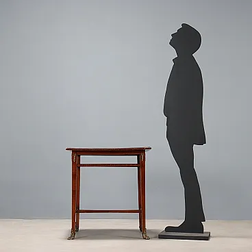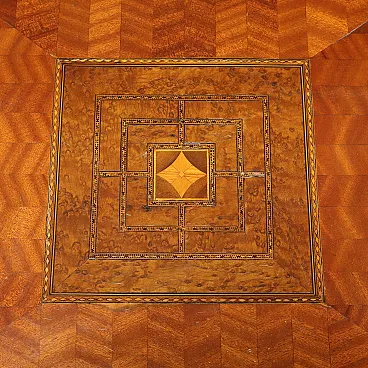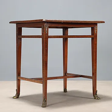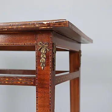 Inlaid and threaded table in various woods and bronze, 19th century