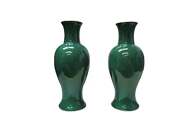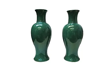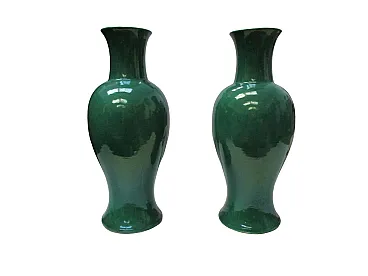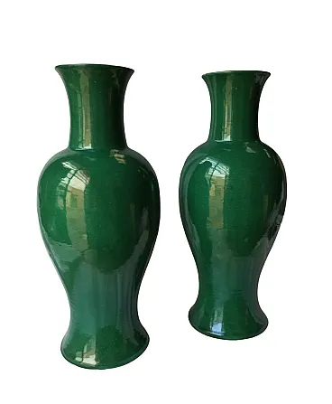 Pair of Chinese vases in single-color green porcelain, 19th century