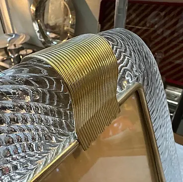 A clear Murano glass picture frame designed and manufactured in Venice in the style of Barovier, it's in lovely condition. The vintage photo frame is a beautiful and elegant piece of decor that is perfect for displaying your favorite memories in style. Barovier is a renowned Italian glass-making company that has been in operation since 1295, and its products are highly valued by collectors and design enthusiasts alike. The photo frame features a rectangular shape with a solid brass, clean internal frame. The outer part of the frame is made of transparent Murano glass, carefully crafted by skilled artisans, with each piece being unique due to the nature of the glass-making process. This photo frame is a perfect example of the Art Deco style that was popular in the early 20th century, characterized by bold geometric shapes, sleek lines, and a focus on luxury and craftsmanship. The photo frame is a timeless piece that will add elegance and sophistication to any room.
