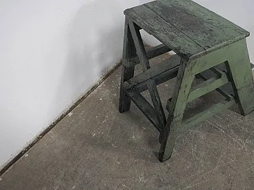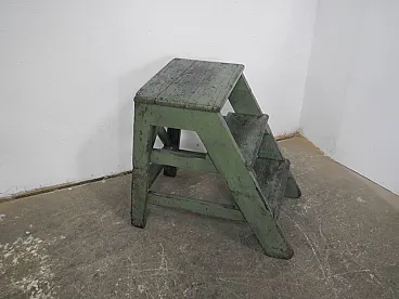 Ladder with 2 steps in green colored fir wood. It can be used as a flower holder in closed or covered places. The upper pine measures 42x30 cm