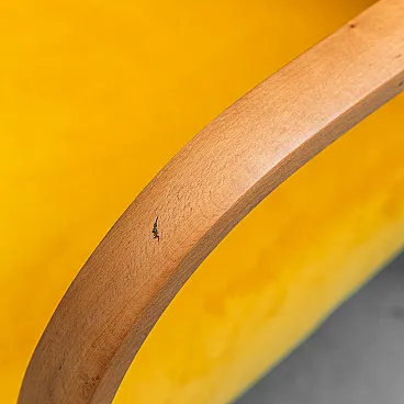 Pair of armchairs in yellow velvet and wood, 1950s 7