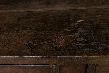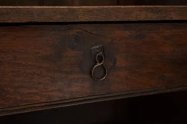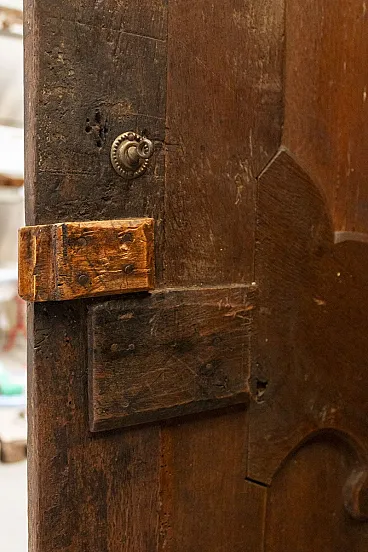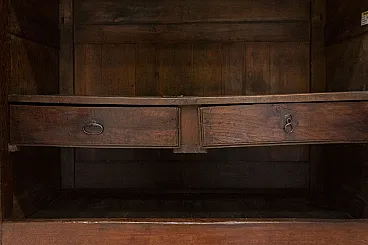 Inside, the cabinet has three shelves and two drawers. The boards are sturdy and thick but, over the centuries, the drawer shelf is lightly loaded: a small wooden pillar has therefore been placed to unload any weights, even if the shelf is solid and does not risk breaking. It's more of an aesthetic factor