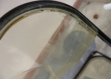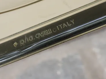 In 1967 Giancarlo Piretti designed a revolutionary chair for Anonima Castelli: with a three-disc joint the chair folds on itself and is reduced to the minimum thickness. Produced seamlessly, this version is in black tube and transparent plexiglass. The set is in a very good vintage condition, with some inevitable signs of aging and a splendid patina. Apart from small imperfections the seats and backs are fine and all chairs are fully functional.