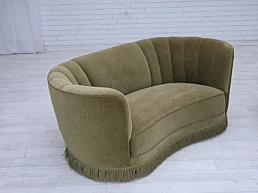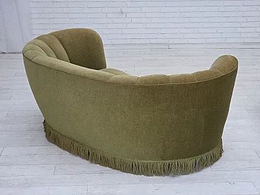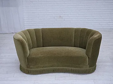 Danish 2-seater Banana sofa green velour, 1960s