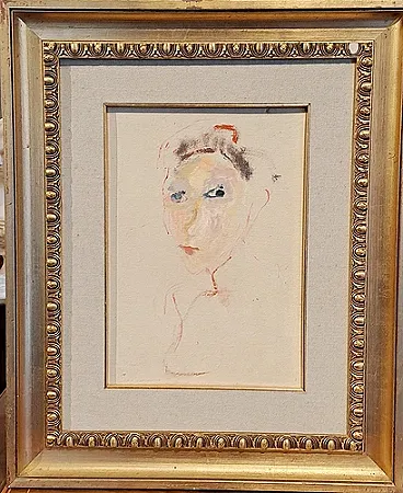 The work represents a female face treated with Treccani's typical lyrical sensitivity. The style is rarefied, almost ethereal: the artist uses fine lines and pastel-colored glazes to bring out the somatic features directly from the canvas's texture. The eyes, hinted at with touches of deep blue, give the gaze a melancholic and dreamy intensity, a peculiar characteristic of the master's mature production, aimed at investigating the essence of the human soul rather than its objective reality.