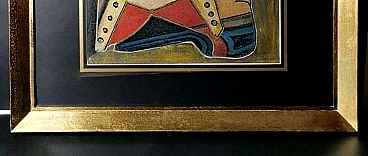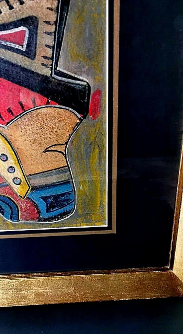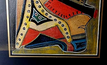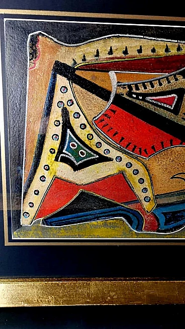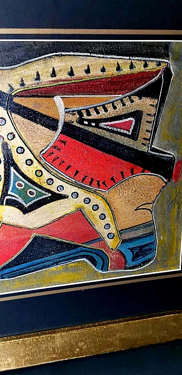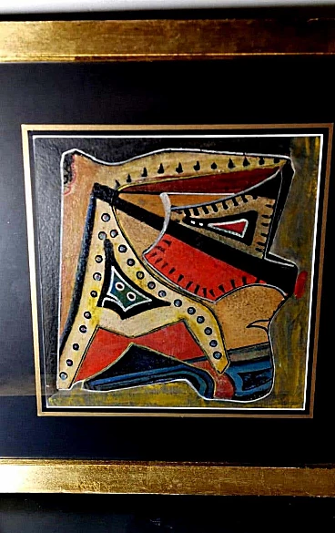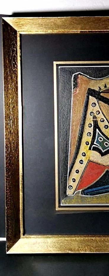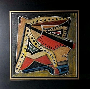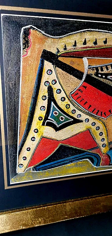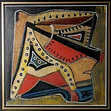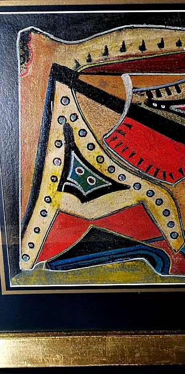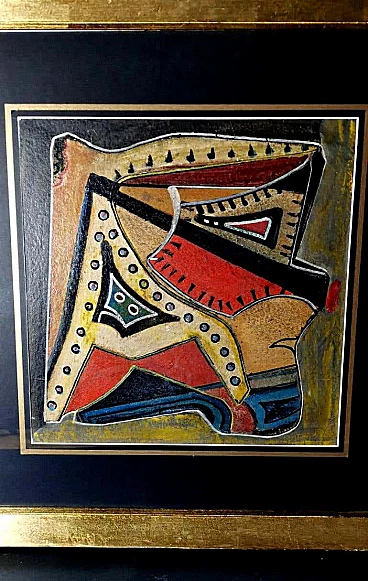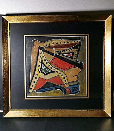 Russian constructivism painting painted with mixed media on cardboard, the wooden frame is painted gold, no signature, executed in Russia between 1925 and 1930. Internal measure are in cm: 42 x 42. The artistic current of constructivism is a cultural movement born in Russia in 1913, shortly before the revolution of 1917 and its strengths are optimism towards technological progress, machine, and industry. Constructivism proposes the evolution of art to exalt the new social class founded on the proletariat, in the need to realize a direct comparison between art and revolution. The works of the artists of this period are based on a strictly geometric composition and therefore devoid of objects. In Germany, it was then the Bauhaus that developed the inheritance in a more fruitful way. In Russia, Constructivism declines in Rationalism, while in the rest of Europe, it gradually falls back to classical positions to become extinct from 1933. Important exponents of the Constructivism were Vladimir Tatlin, El Lissitskij, Aleksandr Rodcenko, and Lajos Kassak.