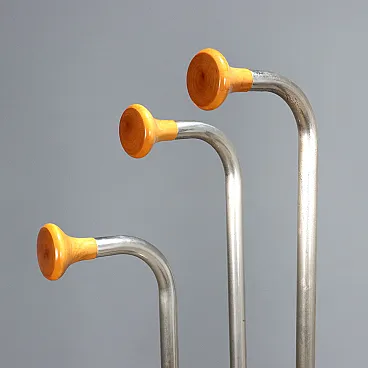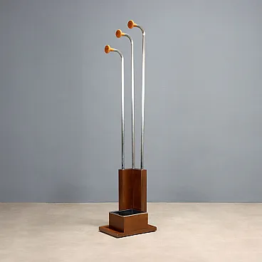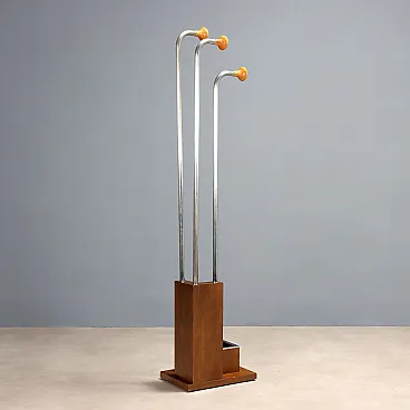 Coat stand with umbrella stand, walnut veneer, chromed metal.
