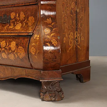 Display cabinet in walnut, burl, maple, and molded glass, 19th century