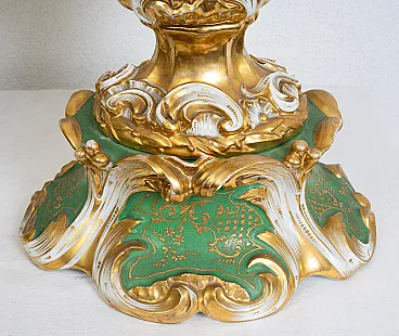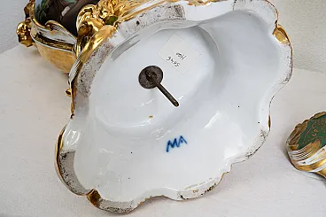 The base has a roccailles shape with a prevalence of green backgrounds.