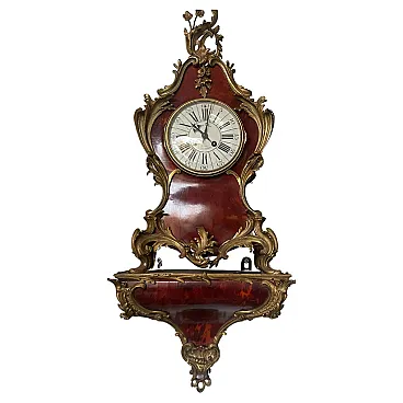 Refined antique Louis XV style console clock, an authentic expression of 18th century French elegance. The body is made of tortoiseshell-effect lacquer, a precious and refined finish, embellished with a rich decoration in finely chiseled gilded bronze, typical of the high-level manufactures of the time.