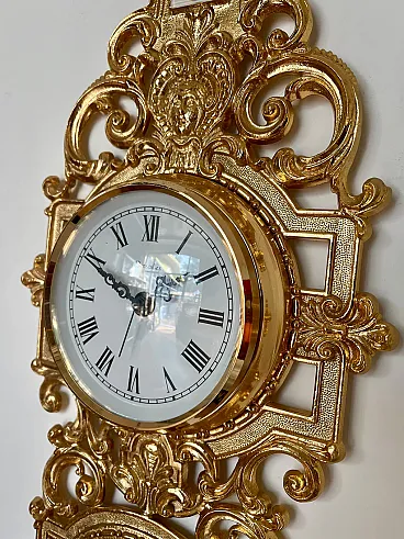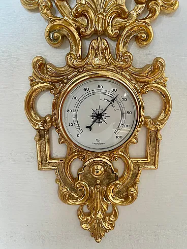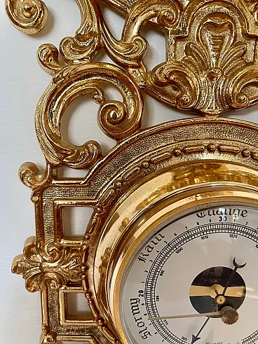 Refined clock with integrated barometer, made in the 20th century in gilded brass, an elegant example of decorative and functional objects of classic taste. The slender and vertical structure harmoniously hosts two superimposed dials, combining the measurement of time with that of atmospheric pressure in a single furnishing element.