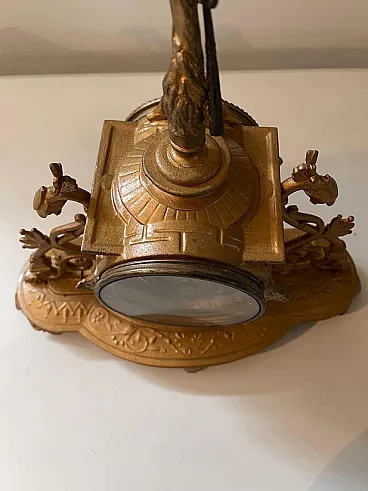 At the top stands a figure of a winged angel, an iconographic element of great impact, which gives verticality and solemnity to the clock and recalls the symbolic and allegorical aesthetics of the nineteenth century. Designed to be displayed on consoles, fireplaces, sideboards or important tables, this clock is ideal for classic environments, historic homes or representative spaces. It is in good general condition, with a patina of time consistent with its age which enhances its character and authenticity.