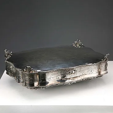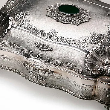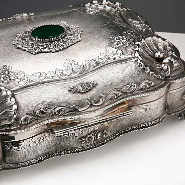 Engraved, chiselled and burin-worked silver box, 20th century