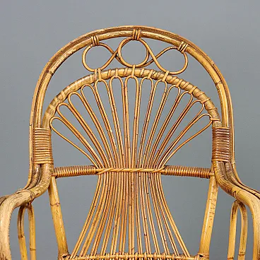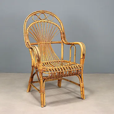Chair with armrests and high backrest in bamboo, 20th century