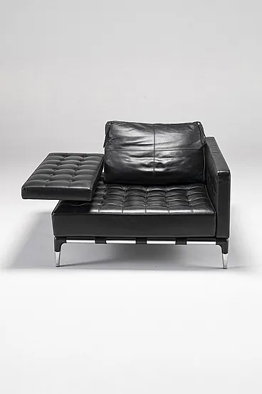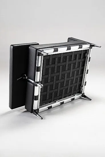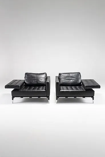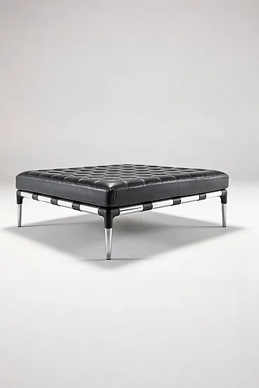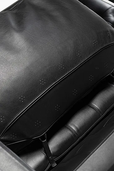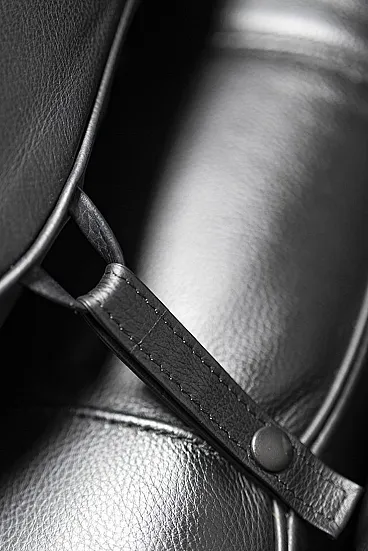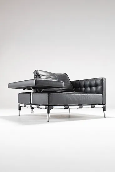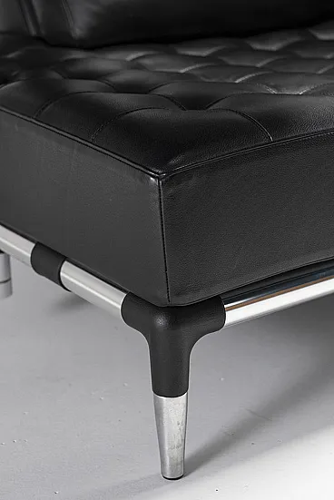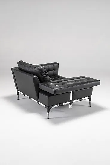 Steel And Leather Armchair model Prive designed by Phillipe Stark. Manufactured by Cassina (Italy). Complex and formal in its design, the Privé collection perfectly combines style and transgression, merging to create an appealing mix of classicism, provocation and playfulness. The collection is made up of different models - different sized armchairs, sofas and islands - and uses upholstery exclusively in capitonné leather, for which Cassina has developed a new technique for attaching the characteristic leather buttons. This internationally patented system provides quality and durability. Privé is suitable for simple interiors, though it can easily blend into contemporary and informal settings.