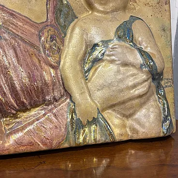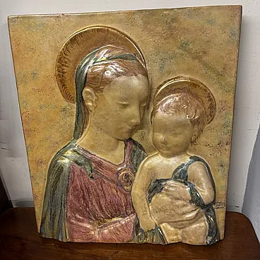 Gold luster majolica plaque, Virgin with Child, mid-20th century