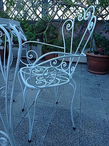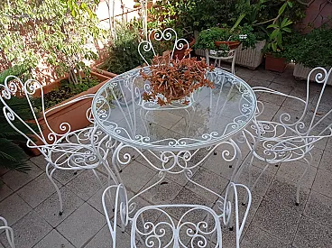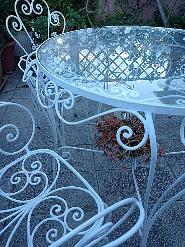 Conservation status: Excellent structural conditions. The set retains its original white paintwork which has a light patina of age and small signs of surface oxidation which attest to its authenticity and era. The glass top is intact.