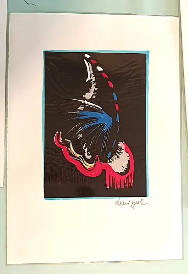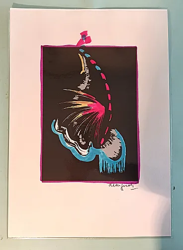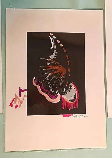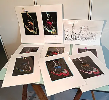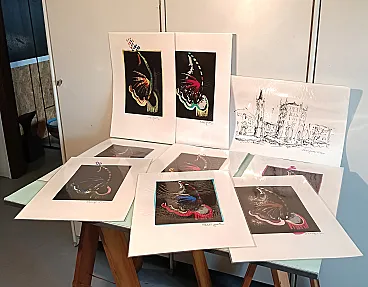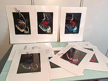9 lithographs of which 8 with manual intervention in watercolor. Butterfly representation.