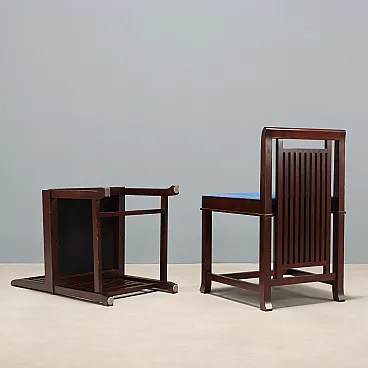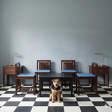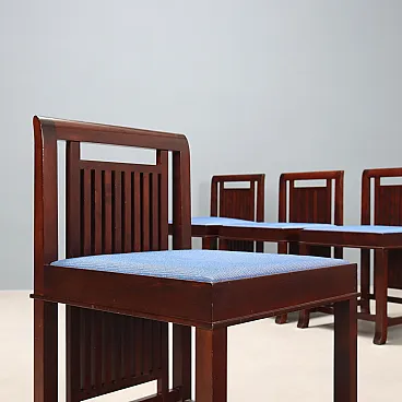4 Chairs in cherry wood, foam, and fabric, 20th century