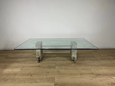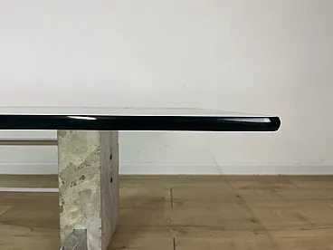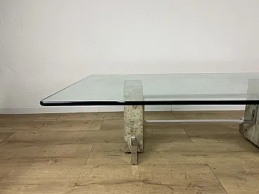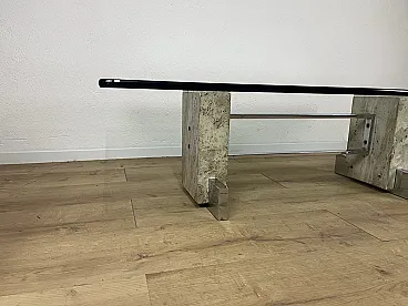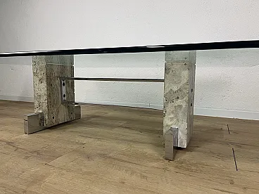 Coffee table in steel, travertine and glass, 1970s
