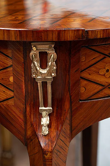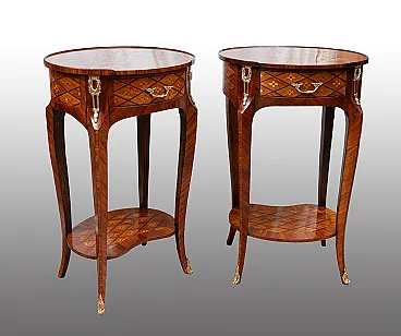 Pair of antique bedside tables in precious exotic woods, 19th century