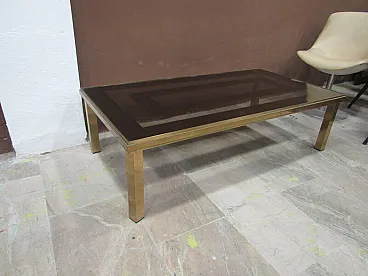 Low table in brass and worked glass, 20th century