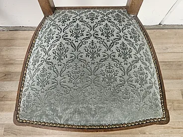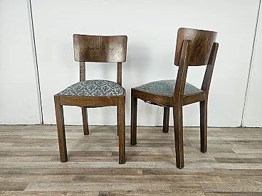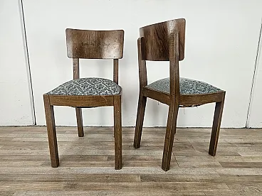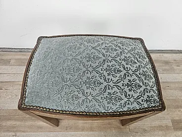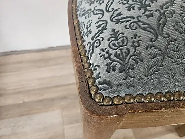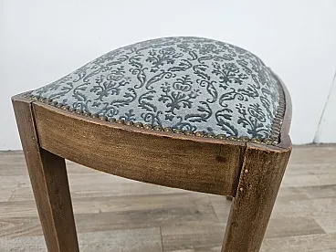 1930s-40s bedroom or living room set consisting of a pair of chairs and a matching stool, all covered with a beautiful patterned fabric decorated with brass studs. The set is in original condition of the time, very well maintained as visible in the photos. Chair measurements: L 43cm D 46cm H 84cm H seat 50cm Stool measurements: L 51cm D 36cm H 49cm