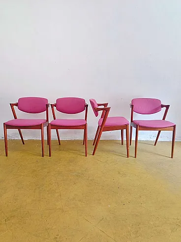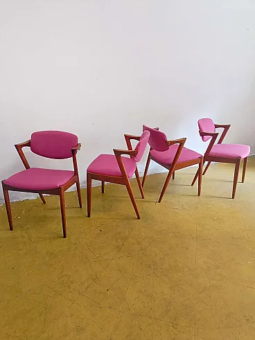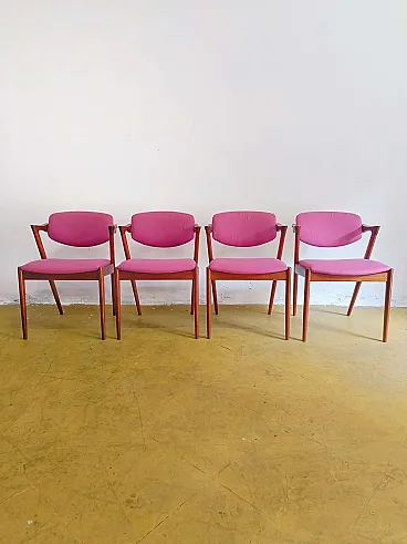 Set of 4 vintage Kai Kristiansen Model Z chairs n.42 perfect for mid-century modern furnishings. These iconic 1960s Danish chairs with new fabric combine bold design with ergonomic comfort.