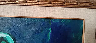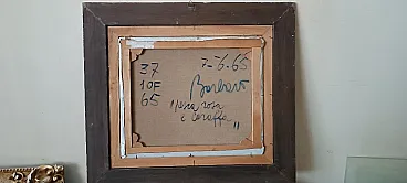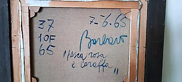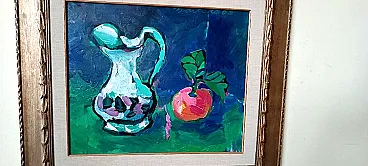 Pink peach and carafe, still life oil on canvas with frame, 1960s
