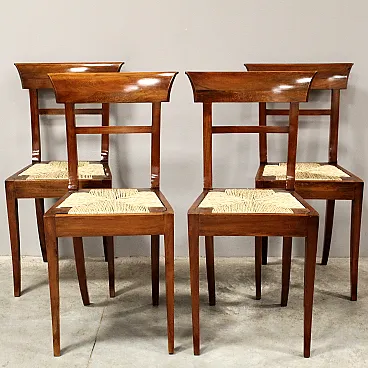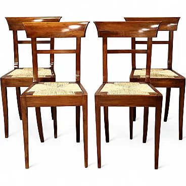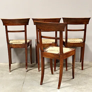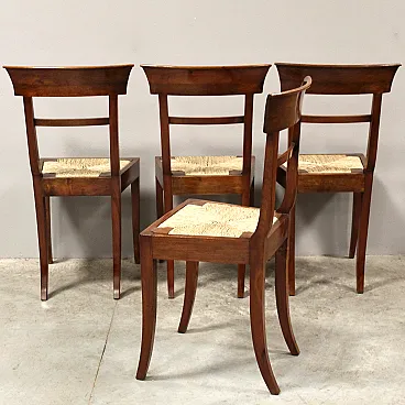 4 inlaid walnut chairs, 19th century