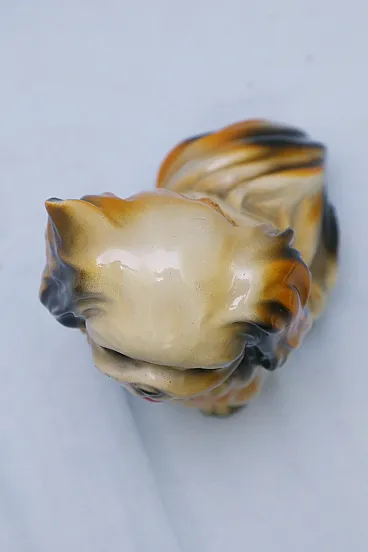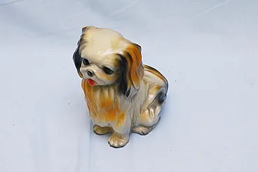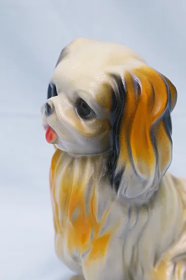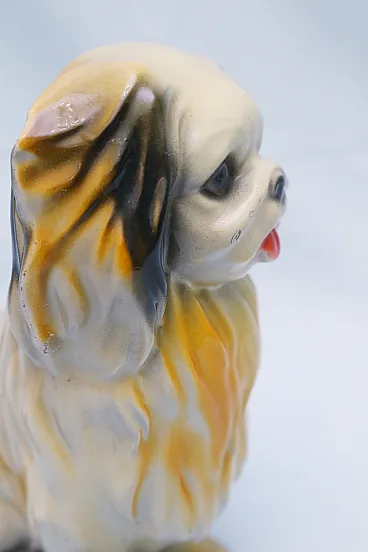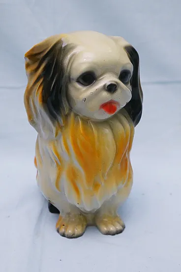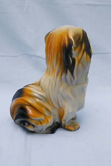 Pekingese dog figurine, enamelled plaster sculpture, 1950s